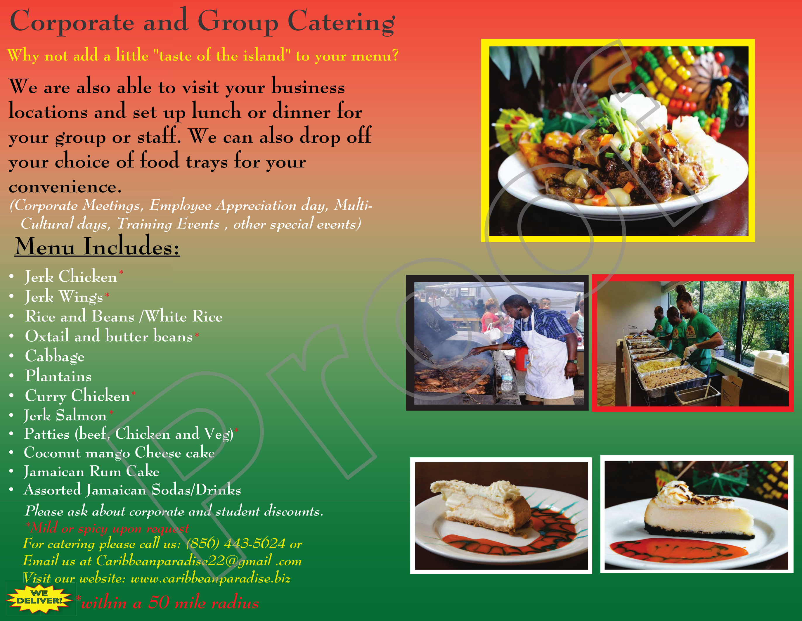 If you are located in the South Jersey or Philadelphia areas and interested in us catering for you or your company please give us a call. Thank You!